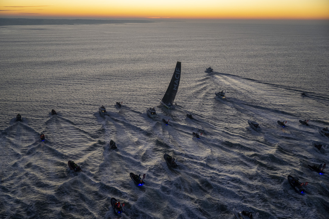 It is 08:24 am when Charlie Darlin, aboard the Imoca Macif Santé Prévoyance, crosses the finish line. After 64 days, 19 hours, 22 minutes, and 49 seconds, he officially becomes the winner of the 10th edition of the Vendée Globe. At the authorized departure time, 30 minutes before sunrise on January 14, 2025, the helicopter departs from the small airfield in Les Sables d'Olonne, its windshield still partially frozen. It is still dark, and the icy cold entering through the open door of the aircraft numbs the fingers already positioned on the controls and cameras. We fly swiftly toward the monohull, fearing we might miss the crossing of the finish line. As the official photographer for the race with Arnaud Letrésor's Alea agency, I’ve been preparing for this unique moment since the day before, with a certain anxiety fueled by the fear of forgetting essential equipment, taking off with uncharged batteries, or not being in top form. Upon arriving on site, we immediately sense the excitement filling the waters. Numerous boats join the sailor, who is no longer solitary. Among them are the organizers’ Zodiacs, the "press" boats, and the skipper’s supporters, accompanying Charlie for the final miles toward Les Sables d'Olonne. The helicopter moves sideways, offering the cameraman and me an ideal angle to capture the hero’s return to the shore, all in the relative warmth of the rising sun. I shoot at 1/500th of a second despite the vibrations of the machine, to avoid any risk of noise in the image. The first shot, a very representative image of a sailor’s return after a solo round-the-world journey.