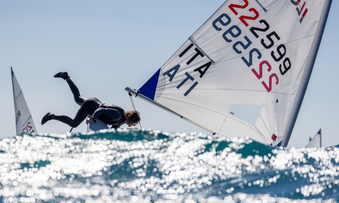 After some days of no wind, with 600 sailors waiting ashore, the final one was plenty of strong breeze and the sea state went up to three meters waves. Boat handling was difficult, as the picture is showing...