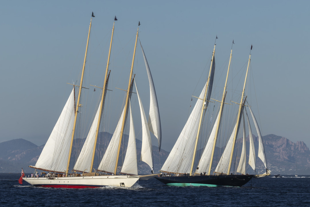 Final day at Les Voiles de Saint-Tropez, where I'm in charge of the TV production for the event. All the racing yachts are back in the harbour ready for the prize giving ceremony. We're all focussed on the editing of the day's feature film and as I leave the office for a phone call my eyes are drawn to the open sea. The light descends toward sunset over the anchored boats. On the horizon, two of the most beautiful schooners, Adix and Atlantic loom. They look like engaged in a match race along the coast of the Saint-Tropez gulf, tacking one over the other. My heart just leaps and I run back to the office to grab a camera and take this picture, the very first of the full set. It's probably one of the most iconic sailing scene I've ever seen, something you'd dream for and would never happen. As simple as it is : Magic !