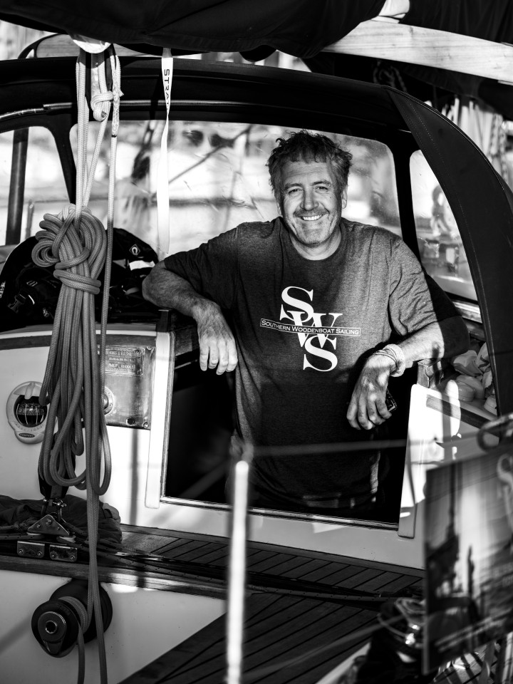 The Tumlaren (Knud Reimers) design is nearly 100 years old, but a fleet of about 10 of these one design boats race regularly in Melbourne. YVONNE pictured here is crewed by three very serious, talented and in demand sailors who would normally race on state-of-the-art keelboats. I love it when the intense focus of competitive sailing is brought to old wooden boats.